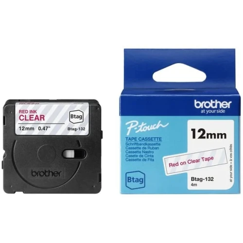 Brother original BTAG132 rød på klar 12mm ulaminert merketape er perfekt for allsidig organisering i hjemmet. Lag merkelapper for å organisere gjenstander på kjøkkenet, hjemmekontoret og personlige gjenstander, samt for å merke oppbevaringsbokser, barnas skolebøker og skrivesaker. Btag tape er holdbar og motstandsdyktig mot mange av forholdene under daglig bruk i hjemmet. Merkelappene tåler mikrobølgeovn, fryser, oppvaskmaskin, husholdningsvæsker og vann, noe som betyr at de vil forbli intakt og leselig over tid. - Merketape for allsidig bruk - Perfekt for merking og organisering - Holdbar og motstandsdyktig - Farge: Rød på klar - Bredde: 12mm - Lengde: 4m - Kompatibel med: Btag PTN-serien