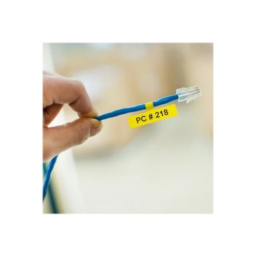 Etikettene kommer i fast størrelse slik at man kan skrive ut etiketter merket i en samme størrelse ved merking av gjenstander. Ved hjelp av etikettskriverne kan man skrive ut egendefinerte etiketter. Etikettene brukes med termisk skriving slik at det ikke er behov for blekk eller toner. Etikettene kan skrives ut i sort på gult for ulike merkingsbehov. Den er ideell for bruk til merking av kort, kunst og håndverk, eller for å sette et personlig preg på andre gjenstander.