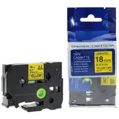 Brother P-Touch Tape Sort på Gul 18mm Ekstra Klebende (8m)