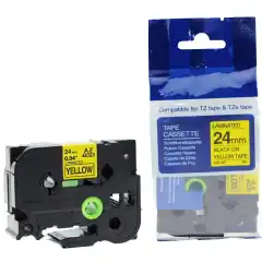 Brother P-Touch Tape Sort på Gul 24mm Ekstra Klebende (8m)