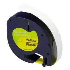 Yaha 91202 LT Label Plast Sort på Gul 12mm (4m),erstatter Dymo S0721620