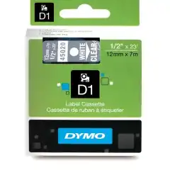 Dymo 45020 D1 Tape Hvit På Klar 12mm (7m ) S0720600