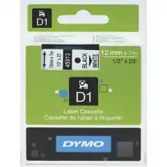 Dymo 45021 D1 Tape Hvit på Sort 12mm (7m) S0720610