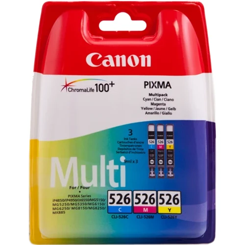 Øk utskriftseffektiviteten med Canon Blekkpatron Pakke CLI-526 CMY, perfekt for modellene Pixma IP 4850, IP 4950, IX 6520, IX 6550, MG 5140, MG 5150 og flere. Se kompatible modeller.
