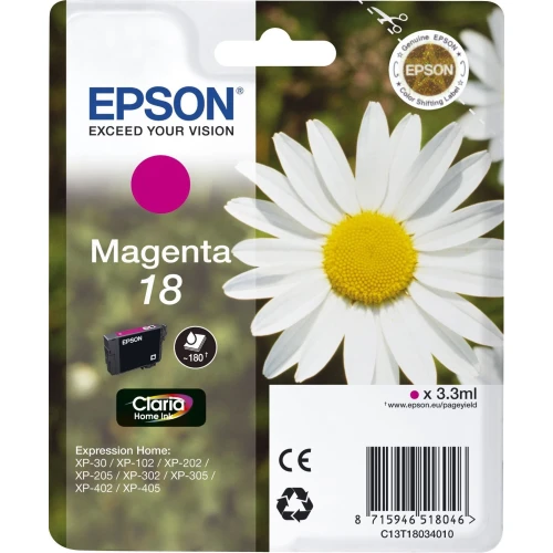 Optimal ytelse med Epson Blekkpatron No.18 Magenta til XP-102, XP-202, XP-212 og mange flere. Sikre deg din for levende utskrifter!