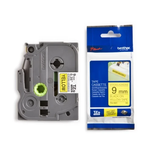 Tom for tape? Sikre Brother P-Touch Tape TZE-S621, sort på gul, 9mm, ekstra klebende, perfekt for P-Touch 1010, 1280, 1290, 1750, 2430PC, 9700PC og flere. Sjekk hele serien!