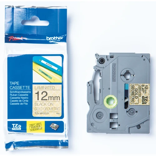 Brother Tape 12mmx4m sort på gull/geomet