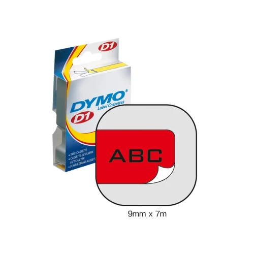 Dymo D1 Tape Sort på Rød 9mm (7m) S0720720