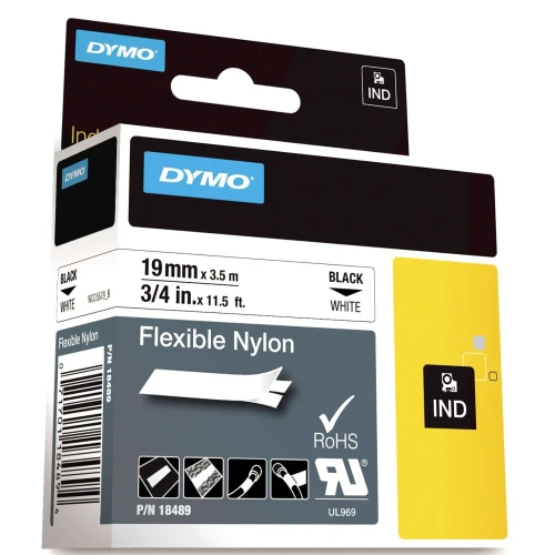 Den permanente DYMO® Rhino-polyesterkassetten på 19 mm inneholder kraftig polyesterteip i svart og hvitt. Gir robuste etiketter som varer lenge. Perfekt til bruk innendørs og utendørs for merking av beholdere, paneler, bjelker eller hyller. Rhino-etikettene viser tekst som skrives ut ved hjelp av varmeoverføringsteknologi, noe som fjerner behovet for blekk og toner. De er bestandige mot vann, UV-lys, kjemikalier og olje og har en sterk klebeevne som passer utmerket for industriell bruk. De er temperaturbestandige mellom –40 og 150 grader Celsius. Bare ta av baksiden av etiketten for enkel påføring.