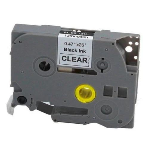 Yaha TZE-131 P-Touch Tape Sort på Klar 12mm (8m), erstatter Brother TZE-131