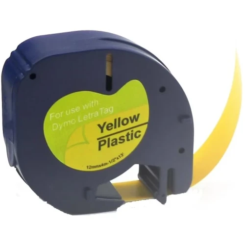 Yaha 91202 LT Label Plast Sort på Gul 12mm (4m),erstatter Dymo S0721620